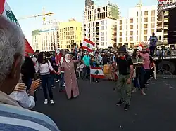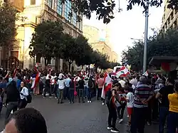 Am Samstag und am Sonntag (19./20. Oktober) kamen in der Hauptstadt Beirut zehntausende Demonstranten am Märtyrer-Platz vor der Mohammed-al-Amin-Moschee zusammen, die von dort zum Regierungssitz führt. Proteste gab es auch Regionen übergreifend von Tripoli im Norden bis nach Tyros und Nabatäa im Süden und in Sidon.[3] Seit Beginn der Proteste in Beirut wurden drei verlassene Gebäude in der Innenstadt, das Teatro al-Kabir, das „Ei“ und die Kirche Saint-Vincent-de-Paul von Demonstrierenden gestürmt.[4]