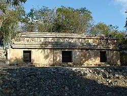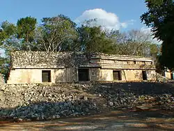 Der insgesamt dem Puuc-Stil zuzurechnende Palast besteht aus mehreren Bauteilen auf zwei Ebenen. Auf der ersten Ebene befinden sich die beiden gut erhaltenen und leicht restaurierten Gebäude, die nach Westen orientiert sind.