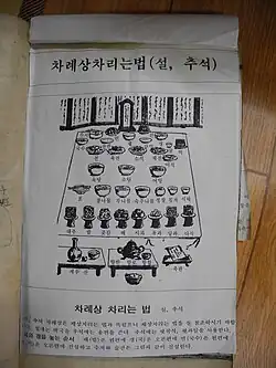 Während des Festes wird nicht nur die Ehrung der sozial höher stehenden lebenden Familienmitglieder und der Ahnen betrieben (차례/茶禮), sondern auch in vergnügter Atmosphäre allerlei Spiele durchgeführt. In vielen Familien werden auch viele Lieder gesungen und dazu viel Alkohol getrunken. Ein für die Kinder und Jugendlichen wichtiger Teil des Festes ist das Festgeld, das sie erhalten, wenn sie den älteren Familienmitgliedern die Ehre erweisen.