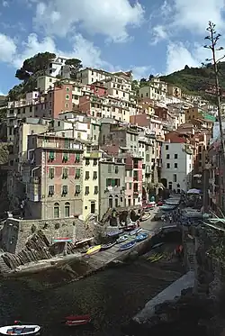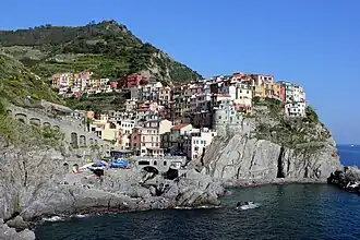 Als Cinque Terre (Ital., wörtlich Fünf Gebiete/Lande) wird ein etwa zwölf Kilometer langer klimabegünstigter Küstenstreifen der Italienischen Riviera zwischen Punta Mesco und Punta di Montenero nordwestlich von La Spezia in der Region Ligurien bezeichnet. Von Nordwest nach Südost reihen sich die fünf Dörfer Monterosso al Mare (1350 Einwohner), Vernazza, Corniglia (zusammen 711 Einwohner), Manarola (353 Einwohner) und Riomaggiore (1263 Einwohner)[1] entlang der steil abfallenden Küste der Riviera di Levante auf.