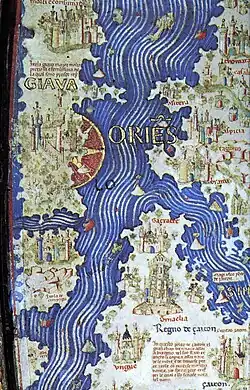 Der Begriff Cipangu tauchte in Europa zum ersten Mal Ende des 13. Jahrhunderts in den Reiseberichten Il Milione des Marco Polo auf.[1] Auf einer europäischen Karte wurde er zusammen mit der Fra-Mauro-Karte erstmals im Jahre 1457 erwähnt, deutlich später als auf chinesischen und koreanischen Karten wie der Kangnido-Karte.