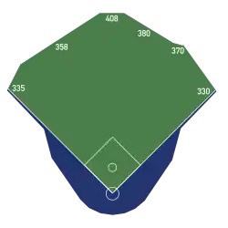 | Spielfeld (feet) | Left field – 338 Left center – 371 Center – 410 Right center – 371 Right field – 338 |