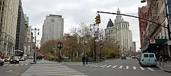 bedient.[5] Mit dem 1913 unter dem Municipal Building eingeweihten U-Bahnhof Chambers Street der BMT Nassau Street Line, in dem die Linien ![]()