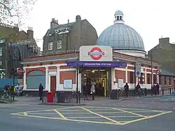 Erst 1902 konnte die Vorlage im Parlament behandelt werden. Widerstand leistete eine konkurrierende U-Bahn-Gesellschaft, die Metropolitan Railway (MR), die das Projekt als Bedrohung ihrer eigenen Linie zwischen King’s Cross und Moorgate betrachtete. Die I&ER reichte eine Petition ein und ersuchte darum, die geplante Strecke an die C&SLR zu übertragen, sofern sie genehmigt würde.[34] Das Parlamentskomitee stieß seine frühere Entscheidung um und wies die Vorlage zurück.[35] Im November 1902 reichte die C&SLR in ihrem eigenen Namen eine ähnlich lautende Initiative ein und ersuchte gleichzeitig um die Übernahme der Konzession der inzwischen aufgelösten Gesellschaft City and Brixton Railway (C&BR).[36] Unter dem Bahnhof Euston war eine Umsteigemöglichkeit zur geplanten, noch nicht gebauten Charing Cross, Euston and Hampstead Railway (CCE&HR) vorgesehen. Die Absicht hinter der Übernahme der Konzession der C&BR war es, eine neue Station unter der King William Street zu bauen, die mit der C&SLR-Station Bank und mit der Station Monument der Metropolitan District Railway (MDR) verbunden wäre. Ein drittes Tunnelpaar sollte die Themse unterqueren, anschließend bis Oval parallel zur C&SLR verlaufen und schließlich nach Brixton führen. Diesmal genehmigte das Parlament die Initiative, die am 11. August 1903 als City and South London Railway Act, 1903 Rechtskraft erlangte.[37] Die Rechte der ehemaligen C&BR blieben ungenutzt, doch die Verlängerung ab Angel wurde rasch gebaut. Ab 12. Mai 1907 verkehrten die Züge zu den Stationen King’s Cross St. Pancras und Euston.[28]