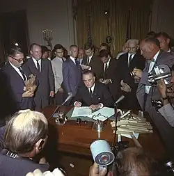 Präsident Johnson unterzeichnete den Civil Rights Act am 2. Juli 1964 im Rahmen einer großen öffentlichen Zeremonie im East Room des Weißen Hauses wenige Stunden nach der Zustimmung des Repräsentantenhauses. Für die Unterzeichnung benutzte Johnson mehr als 100 Füllfederhalter, die er im Anschluss an die anwesenden Gäste verteilte. Unter diesen war der bekannteste afroamerikanische Bürgerrechtler Martin Luther King. Mit Johnsons Unterschrift erlangte der Civil Rights Act formal Rechtskraft.