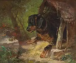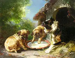- Hundefamilie am Fressnapf vor der Hütte, 1871