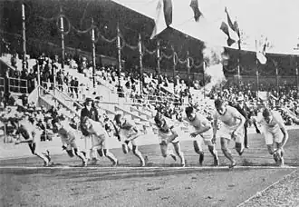 Clarence Edmundson (2. v. r.) im 800-Meter-Finale von Stockholm 1912