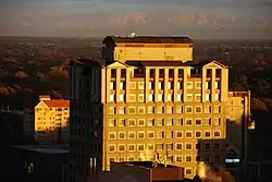 Die 17 Stockwerke zählenden Clarendon Towers wurden von Warren and Mahoney geplant[9], gebaut wurde das Hochhaus in den Jahren 1986 und 1987. Es handelte sich um das erste Beispiel einer Entkernung in Christchurch, und der ortsansässige Künstler Bill Sutton beschrieb die Neuschaffung als „ein Junge mit bis zu den Knöcheln heruntergezogenen Hosen“, womit er reichlich Zustimmung bekam, doch andere waren zufrieden, dass die historische Fassade erhalten geblieben war.[3]