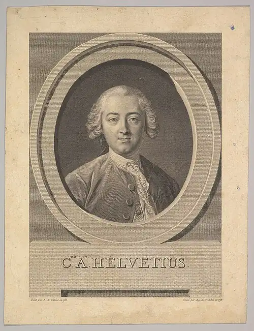 - ↑ Gerhard Rudolph: Helvétius, Claude-Adrien. In: Werner E. Gerabek, Bernhard D. Haage, Gundolf Keil, Wolfgang Wegner (Hrsg.): Enzyklopädie Medizingeschichte. De Gruyter, Berlin / New York 2005, ISBN 3-11-015714-4, S. 567 f.