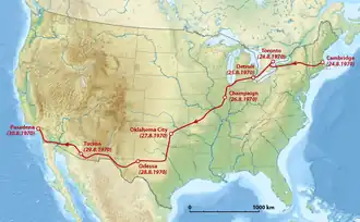 Das Rennen begann am 24. August 1970 am Massachusetts Institute of Technology in Cambridge (Massachusetts) und endete sechs Tage später am California Institute of Technology in Pasadena (Kalifornien). Die Strecke führte über etwa 5800 Kilometer durch elf Bundesstaaten und Ontario, Kanada. Entlang der Strecke wurden mehrfach Emissionsprüfungen durchgeführt, unter anderem am Start, in Pasadena und in Detroit in den Prüfständen der Automobilhersteller.[3]