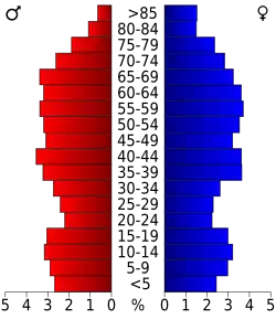 21,3 Prozent der Bevölkerung waren unter 18 Jahre alt, 6,6 Prozent zwischen 18 und 24, 24,1 Prozent zwischen 25 und 44, 26,9 Prozent zwischen 45 und 64 und 21,1 Prozent waren 65 Jahre oder älter. Das Durchschnittsalter betrug 44 Jahre. Auf 100 weibliche kamen statistisch 93,9 männliche Personen und auf 100 Frauen im Alter von 18 Jahren und darüber kamen durchschnittlich 92,5 Männer.