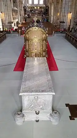 Die Überführung der Leiche geschah noch im ursprünglichen Sarg. Daher ist anzunehmen, dass sein letzter Wille, nach Bamberg, „seiner geliebten Braut“[6], überführt zu werden, bereits länger vor dem Besuch von Papst Leo IX. in Bamberg im Jahr 1052 erfüllt wurde. Bei diesem Besuch wurde Bamberg aufgrund des Papstgrabes von Leo mit besonderen Vorrechten ausgestattet, die den Bestand des 1007 von Heinrich II. gegründeten Bistums langfristig sicherten.