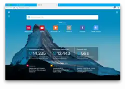 Wurde ein neuer Tab im Browser geöffnet, wurden häufig besuchte Webseiten angezeigt. Es ließen sich Schnellzugriffsmöglichkeiten entfernen oder manuell hinzufügen. Die Seite beinhaltete auch Schlagzeilen wichtiger Nachrichten-Webseiten und Verweise auf die entsprechenden Artikel.