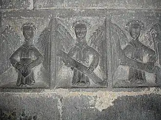 | Drei Details aus dem Inneren der Kathedrale und einer vom Tymphanon: | |||||