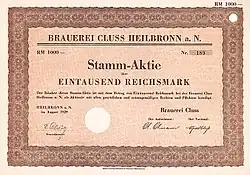Die Brauerei Cluss, Brüggemann & Co. wurde 1865 in Heilbronn von August Cluss (* 3. August 1832 in Heilbronn, † 27. März 1904), Louis Brüggemann (* 1825 in Trendelburg, † 1900) und Andreas Faißt (* 1821, † 1878) gegründet. Das Firmengelände befand sich auf dem Rosenberg. Gründer August Cluss war der Bruder des Architekten Adolf Cluss und Schwager von Mitbegründer Faißt. 1868 erfolgte die Umbenennung des Unternehmens in August Cluss & Co., 1880 die Umwandlung in eine Offene Handelsgesellschaft, am 19. Januar 1898 in eine Aktiengesellschaft unter der Bezeichnung Aktienbrauerei Cluss. Ende des 19. Jahrhunderts begann die Brauerei zu expandieren. Er erfolgte unter anderem die Errichtung einer eigenen Malzfabrik (1890) und der Ankauf kleinerer Brauereien. 1922 wurde die Produktion alkoholfreier Getränke aufgenommen. 1933 war Cluss neben der Rosenau-Brauerei (gegründet 1860) einzige Brauerei in Heilbronn. Mehrheitseigner der Gesellschaft war die Handels- und Gewerbebank Heilbronn AG (heute: BW-Bank).