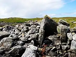 Das Clyde Tomb von Geirisclett auf der schottischen Insel North Uist, die zu den Äußeren Hebriden gehört. Es liegt an einer Bucht gegenüber der Gezeiteninsel Vallay nahe der Hochwassermarke und ist durch die Gezeitenerosion gefährdet. Die Anlage ist als Scheduled Monument geschützt.[1]