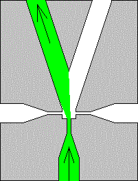 Der Coandă-Effekt wird auch für pneumatische oder hydraulische Steuerungssysteme genutzt. (Fluidik)
