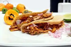 Cochinita pibil (von spanisch cochinita = Diminutiv von cochina, „Sau“, und mayanisch pibil = „in einem Erdofen (Píib) gekochtes Essen“; auch puerco pibil oder cochinita con achiote) ist ein traditionelles mexikanisches langsam gebratenes Schweinefleischgericht von der Halbinsel Yucatán. Die Zubereitung der traditionellen Cochinita beinhaltet das Marinieren des Fleisches in stark saurem Zitrussaft, das Hinzufügen von Annatto-Samen (spanisch achiote), die eine lebendige gebrannte Orangenfarbe verleihen, und das Braten des Fleisches in einem Píib, während es in Bananenblätter gewickelt ist.[1]