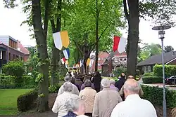 - ↑ https://www.lamberti-coe.de/ Zitat:"Pfingsten 2023: Pfingstprozession: Am Pfingstmontag, 29.05. findet wieder die alljährliche „Prozession um die Wälle“ statt. Der Auszug der Prozession ist nach der hl. Messe um 8.00 Uhr von der St. Lamberti Kirche aus. Der Weg führt vom Marktplatz über die Münsterstraße, Große Viehstraße, Mühlenstraße zum Mühlenplatz, wo die erste Station gehalten wird. Dann geht es weiter über die Wälle Schützenwall, Südwall zur Letter Straße, dort ist die zweite Station. Weiter geht es über den Jakobiwall, Gerichtsring bis zur Süringstraße 41 (Parkplatz Dieninghoff) dort ist die dritte Station. Über den Basteiwall bis zur Neutorstraße, am Basteiring ist die vierte Station. Dann über die Neustraße, Pumpengasse, Münsterstraße, Südring zur fünften Station (Christophorusklinik). Abschluss ist in der St. Jakobi Kirche."