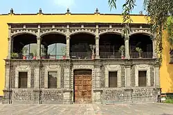 Die Südseite der Kirche wird gänzlich vom ehemaligen Kloster- und Ausbildungsbereich des Kollegs eingenommen. Die an der Außenseite gelbgestrichenen Gebäude stammen größtenteils noch aus dem späten 16. und beginnenden 17. Jahrhundert. Besonders hervorzuheben ist die aus unverputzten Tezontle- und Sandsteinen gestaltete Eingangsfassade auf der Ostseite mit ihrer fünfbogigen Außenempore. Im Innern befindet sich ein großer doppelgeschossiger Kreuzgang mit angrenzenden Gebäuden; im oberen Teil des Kreuzgangs befanden sich die Wohn- und Schlafräume der Studenten. Mitte des 19. Jahrhunderts wurde der gesamte Komplex profaniert und zeitweise als Militärgefängnis genutzt. Erst im Jahr 1944 wurde die Kirche wieder für den Gottesdienst geöffnet und unter die Leitung von Franziskanern gestellt.