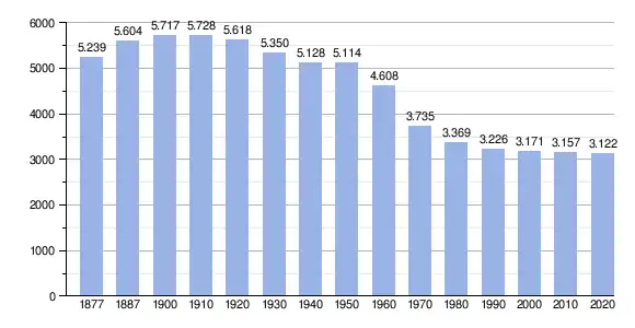 Die kontinuierliche Bevölkerungsrückgang in der zweiten Hälfte des 20. Jahrhunderts ist im Wesentlichen auf die Mechanisierung der Landwirtschaft und den damit einhergehenden Verlust an Arbeitsplätzen zurückzuführen.[4]