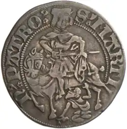 Dicken (¼ Bettlertaler) von 1499 der Stadt Colmar, Vorbild aller Gepräge dieser Art.