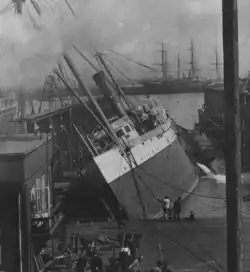 Die Columbia in den Union Iron Works nach dem Erdbeben von 1906
