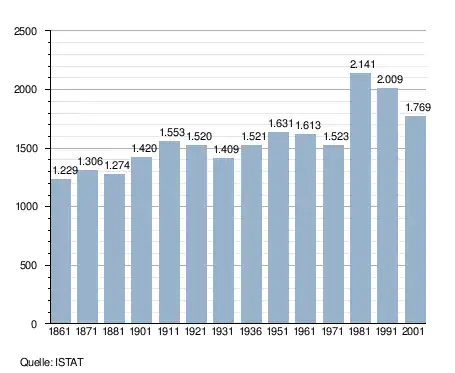 - ↑ Bilancio demografico e popolazione residente per sesso al 31 dicembre 2024. ISTAT. (Bevölkerungsstatistiken des Istituto Nazionale di Statistica, Stand 31. Dezember 2024).