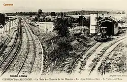 Während des Ersten Weltkriegs gab es eine mit deutschen Lokomotiven betriebene 600-mm-Feldbahn zwischen Clermont-en-Argonne und Auzéville | |