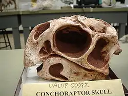 Anfangs wurde das Fossil Oviraptor zugeschrieben, erst 1986 stellte Rinchen Barsbold auf Basis dieses Fossils die neue Gattung Conchoraptor auf. Seit der Erstbeschreibung wurden Conchoraptor vier weitere teilweise Schädel und zahlreiches weiteres Schädel- und Postkranialmaterial zugeschrieben.[2][3]