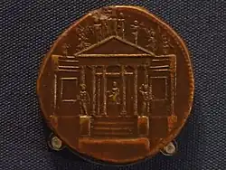 Der Bau hatte eine breit gelagerte Cella von 45 Meter Breite und nur 24 Meter Tiefe. Diesem breitrechteckigen Raum war eine etwa ebenso tiefe, aber nur knapp 30 Meter breite Vorhalle vorgelagert, die aus 6 × 3 Säulen gebildet wurde. Nach Ausweis von Münzdarstellungen waren die Säulen korinthischer Ordnung, erhalten sind aber nur unbedeutende Kannelurenfragmente. Vom Gebälk hingegen sind Reste eines 3-Faszien-Architravs sowie des überaus reich dekorierten Konsolengeisons und der Sima nachgewiesen. Seitlich der Vorhalle besaß die Cella Fenster, die nicht nur über die Münzdarstellungen erschlossen wurden, deren Fragmente vielmehr im archäologischen Befund nachgewiesen werden konnten.