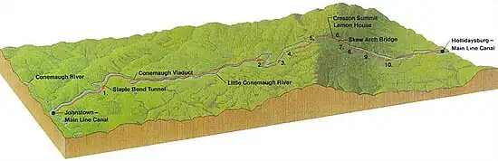 - ↑ Allegheny Portage Railroad of the Pennsylvania Canal. ( vom 7. Oktober 2012 im Internet Archive) National Historic Landmark summary listing. National Park Service. Abgerufen am 16. Februar 2015.