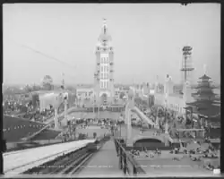 1897 folgte George Cornelius Tilyou mit seinem Steeplechase Park, dessen Hauptattraktionen ein Riesenrad und das namensgebende mechanische Pferderennen waren, das aus sechs parallel verlaufenden Eisenschienen mit reitbaren Holzpferden bestand. 1902 kamen Frederic Thompson und Elmer Dundy mit ihrer „Reise zum Mond“ dazu, einem Boot-artigen Raumschiff mit „Batman“-Flügeln, das in einer Art Venturer-Fahrsimulator untergebracht war. Im Gegensatz zu seinen späteren Konkurrenten hatte Tilyou eher weniger gediegene Fahrgeschäfte mit Nervenkitzel wie etwa dem Teufelsrad („The Human Roulette Wheel“) zu bieten. Gastronomie gab es in dieser Anlage auch nicht. Als Werbefigur diente zeitlebens ein komisch grinsendes Männergesicht, dem Funny Face („komisches Gesicht“), das verschiedentlich an den jeweiligen Zeitgeschmack angepasst wurde.