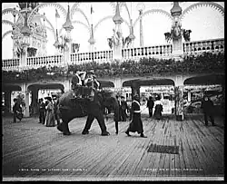 So kamen nach und nach weniger feine Etablissements hinzu. Vor allem Neureiche und Geschäftemacher errichteten im Westen der Insel Hotels mit klangvollen Namen wie „Windsor“, „Tivoli“ oder „Sea View“, die jedoch in Wahrheit vor allem dem Glücksspiel und der Prostitution dienten. Dieses Milieu zog Kriminelle aller Art an. Ecke Surf Avenue und 5. Straße West stand das wohl bekannteste derartige Etablissement, das Hotel Elephant von James V. Lafferty aus dem Jahre 1885. Der 100 Fuß (≈ 30 Meter) lange und 72 Fuß (≈ 22 Meter) hohe Bau in Form eines Elefanten wurde schnell zu einem Sinnbild für das „horizontale Gewerbe“, was sich in dem Ausdruck „Seeing the Elephant“ („Den Elefanten besuchen“) niederschlug. Bis heute hat sich im New Yorker Slang auch die Bezeichnung „Coney Island Whitefish“ („Coney Island Weißfisch“) für gebrauchte Kondome gehalten.