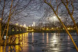 Der Congaree River entsteht in Columbia durch den Zusammenfluss von Saluda River und Broad River in der Nähe der Piedmont Fall Line. Er bildet einen Teil der Grenze zwischen den Countys Richland, Calhoun und Lexington.[6] Die einzigen Städte in der Nähe des Flusses sind Columbia im Osten sowie Cayce und West Columbia im Westen.
