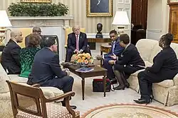 - ↑ David Weigel, John Wagner: Congressional Black Caucus leaders meet with Trump, push for policy proposals not photo ops. In: The Washington Post, 22. März 2017; P. R. Lockhart: At Trump’s State of the Union, the silence of the Congressional Black Caucus spoke volumes. In: Vox.com, 1. Februar 2018; Mike Lillis: Congressional Black Caucus bashes Trump’s move to scrap affirmative action. In: The Hill, 3. Juli 2018.