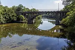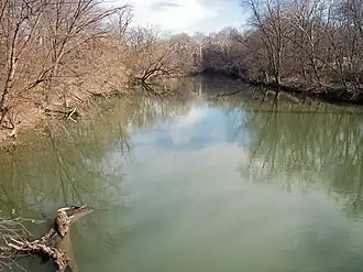 ![]() Der Conococheague Creek unweit der Mündung bei Williamsport, Maryland im Chesapeake and Ohio Canal National Historical Park | ||