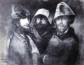 Lithographie eines Gruppenporträts von Rosenthal. Von links: Rosenthal (mit phrygischer Mütze), C. A. Rosetti und ein unbekannter Revolutionär