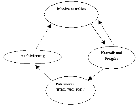Benutzt man als Autor oder Redakteur zur Veröffentlichung einer HTML-Seite lediglich einen Web-Editor, wie z. B. Microsoft Frontpage oder Macromedia Dreamweaver, werden viele der oben angerissenen Aufgaben durch Site-Management-Funktionen bewältigt. Jedoch reichen diese Funktionen bei weitem nicht aus, um komplexe Websites, die aus mehreren Tausend bis Millionen Objekten bestehen und spezielle Kontroll- und Freigabezyklen benötigen, zu verwalten. Diese Aufgabe kann nur mit Unterstützung von Freigabeworkflows und datenbankgestütztem Publizieren von einem Redaktionssystem, Web-Content-Management-System oder Enterprise-Content-Management-System geleistet werden.