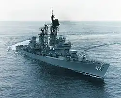 | Bewaffnung | 1 Doppelarmstarter für Raketen 1 ASROC-Starter 2 Dreifach-Torpedowerfer 1 Geschütz 127 mm, später zusätzlich 8 Seezielflugkörper |