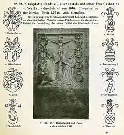 - ↑ a b c Carl Schuchhardt: Grabplatte Cordt v. Bestenbostels und seiner Frau Catharina v. Weihe, wahrscheinlich von 1616. Bissendorf an der Kirche. Breit 1,27 m. Abb. hierneben. In: ders.: Die hannoverschen Bildhauer der Renaissance. Mit 50 Lichtdrucktafeln und vielen Textabbildungen, hrsg. von der Stadt Hannover, Hahnsche Buchhandlung, Hannover 1909, S. 59 f.; (Textarchiv – Internet Archive).