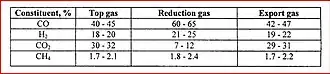 - Der wesentliche Nachteil des Verfahrens sind die enormen Mengen an anfallendem Corexgas, welches verwertet werden muss, um den Prozess wirtschaftlich betreiben zu können. Da das Gas als Brennstoff im laufenden Prozess schlecht in ein gewachsenes Hüttenwerk zu integrieren ist, wird es vorwiegend an Energieversorger bzw. an die Schwerindustrie als Heiz- und Feuerungsgas weiterverkauft.