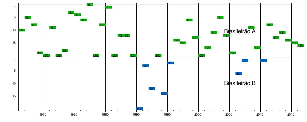 - höchste Niederlage im Verlauf der nationalen Meisterschaft: 0-5 gegen Grêmio (29. Februar 1984) bzw. gegen Palmeiras (17. August 1996)