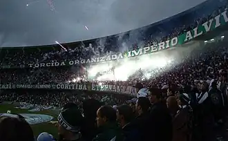 - ↑ Luana Kaseker: Green Hell, recorde de público e sincronia: torcida do Coritiba vive dia perfeito. In: UmDoisEsportes. Abgerufen am 26. April 2025 (brasilianisches Portugiesisch).