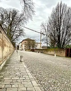 Wenn man weiter in Richtung der Stadtmauern geht, kommt man rechts zu einem zweiten Eingang des Massari-Parks und dann links zur Kreuzung mit der Via Arianuova stand früher die Kirche Santa Maria degli Angeli.