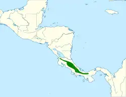 Verbreitungsgebiet der Costa-Rica-Wachteltaube (grün)