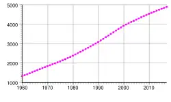 | 1960 | 1.333.000 | 2000 | 3.925.000 |