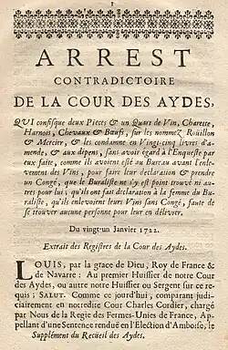Die Offiziere der Cour des Aides de Paris erhielten 1645 den Adelstitel ersten Grades. Der Gerichtshof wurde am 22. Januar 1791 endgültig abgeschafft.