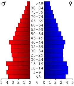 28,8 Prozent der Bevölkerung war unter 18 Jahre alt, 9,6 Prozent zwischen 18 und 24, 27,3 Prozent zwischen 25 und 44, 21,2 Prozent zwischen 45 und 64 Jahre alt und 13,0 Prozent waren 65 Jahre oder älter. Das Durchschnittsalter betrug 34 Jahre. Auf 100 weibliche kamen statistisch 92,6 männliche Personen und auf 100 Frauen im Alter von 18 Jahren oder darüber kamen 90,4 Männer.