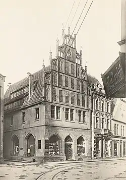 - ↑ Siehe hierzu: Karl E. Mummenhoff: Die Profanbauten des westfälischen Herrenstandes. In: Der Raum Westfalen, Band IV/2, Münster 1965, S. 238–239. Hier sind vor allem das 1904 durch einen Brand zerstörte Haus Roggenmarkt 11 und das nach dem Zweiten Weltkrieg wiederhergestellte Haus Prinzipalmarkt 11 zu nennen. Beide entstanden bereits um 1490.
